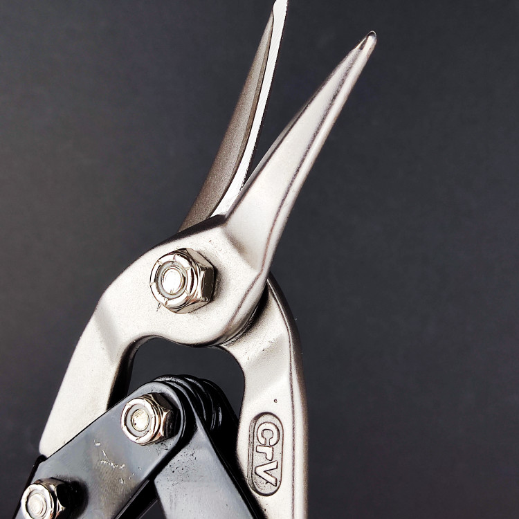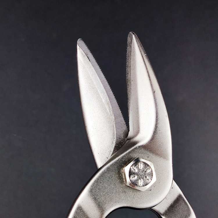 قیچی حلبی بر ✅دماغه راست ✅10 اینچ 250 میلی متر ✅جنس Cr-V فولاد حرارت دیده ✅دماغه دندانه دندانه و تراش داده شده ✅دستگیره پی وی سی دو رنگ