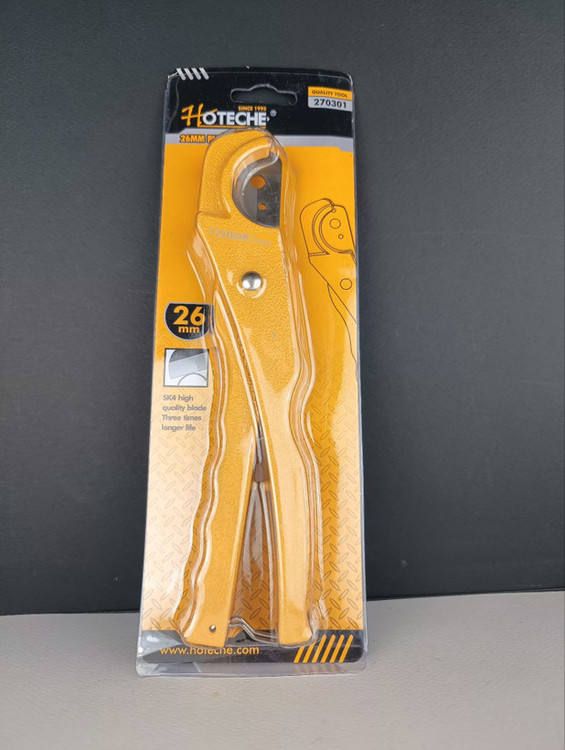 قیچی لوله بر 5 لایه تک ضرب 32 میلی متر از برند Hoteche هوتچ دارای بدنه آلومینیومی و تیغه فولادی 65Mn است این قیچی برای برش لولههای پلاستیکی و پی وی سی به ویژه لولههای پنج لایه طراحی شده است