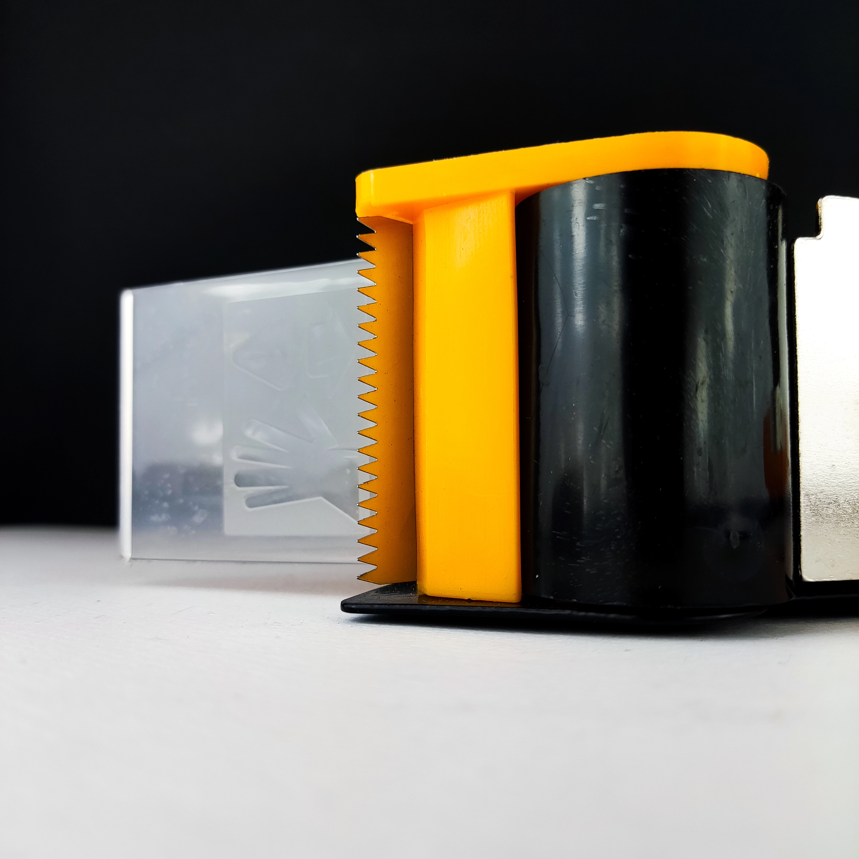 تیغه این دستگاه از جنس فولاد ضد زنگ ساخته شده است که مقاومت بالایی در برابر خوردگی و سایش دارد. این تیغه بهراحتی چسب را برش میدهد و عملکردی دقیق و تمیز ارائه میکند.