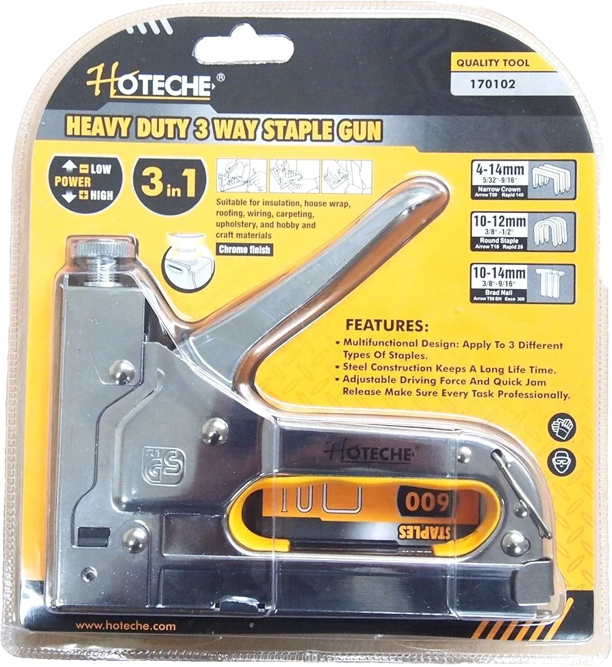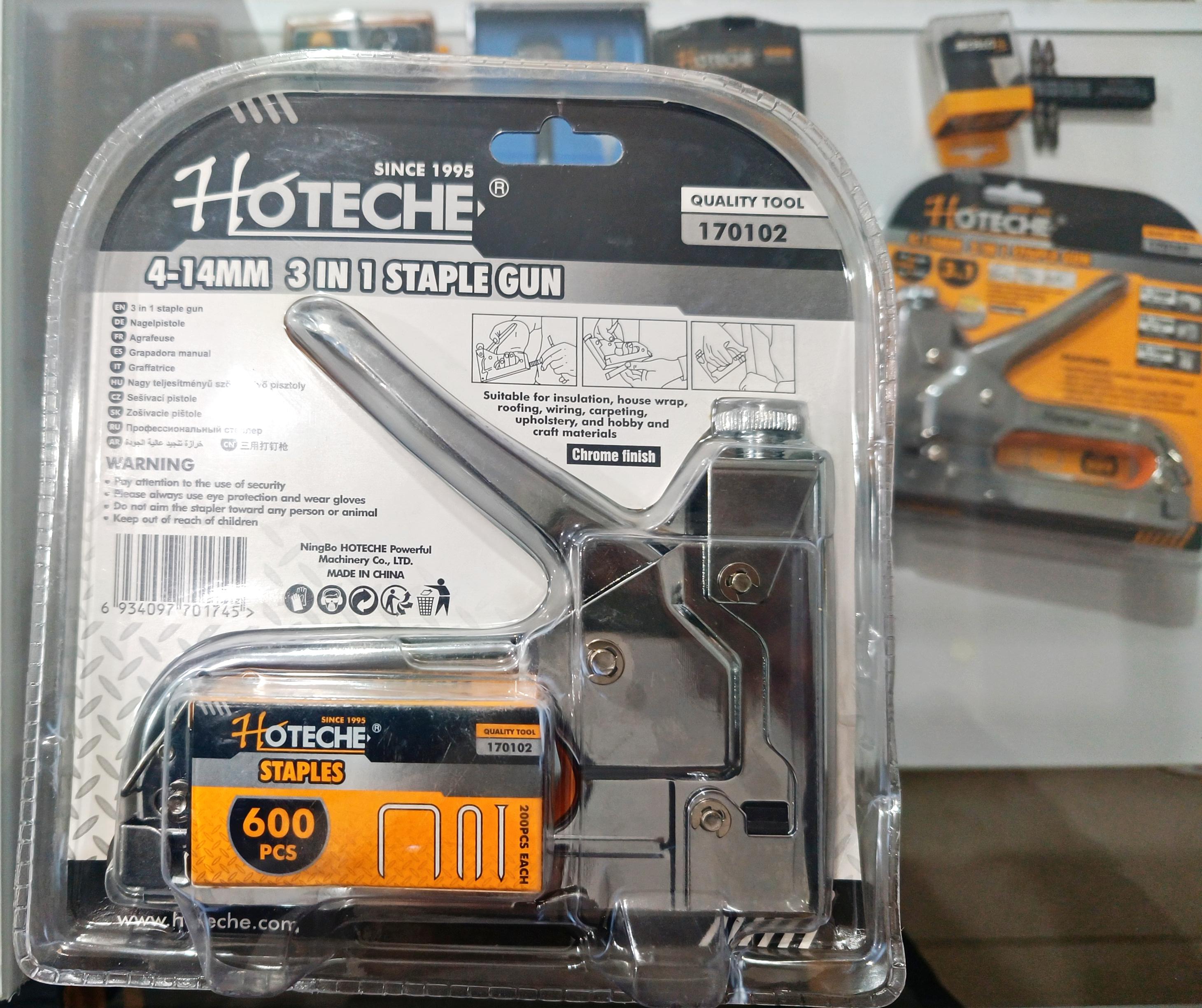 تفنگ منگنه 4-14 میلیمتر 3 کاره همراه با 200 عدد میخ برند Hoteche (هوتچ) یکی از محصولات معروف این برند است.این تفنگ منگنه برای کارهای ساختمانی و تولید محصولات مختلف مناسب است.