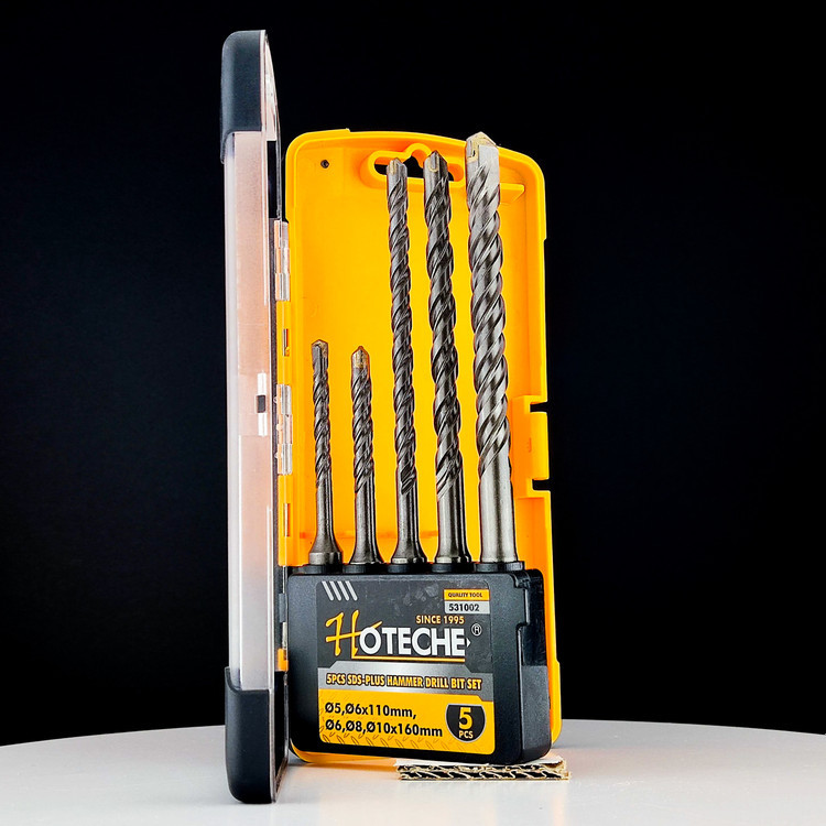 مجموعه 5 عددی مته چکشی 4 شیار جنس: Cr-V سطح: پرداخت ساتن اندازه: 5X110Mm،6X110Mm،6X160Mm،8X160Mm،10X160Mm