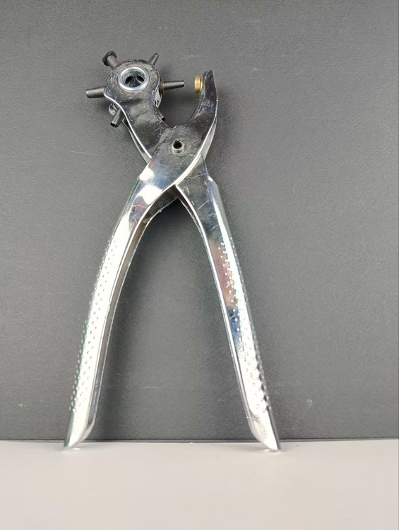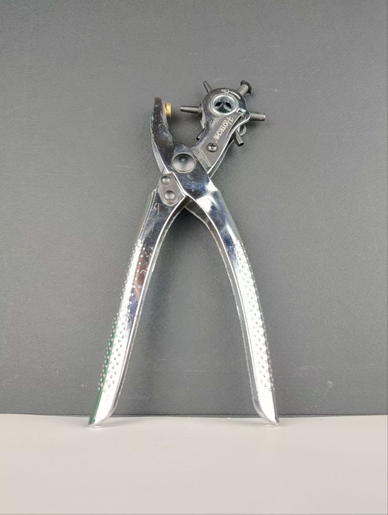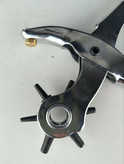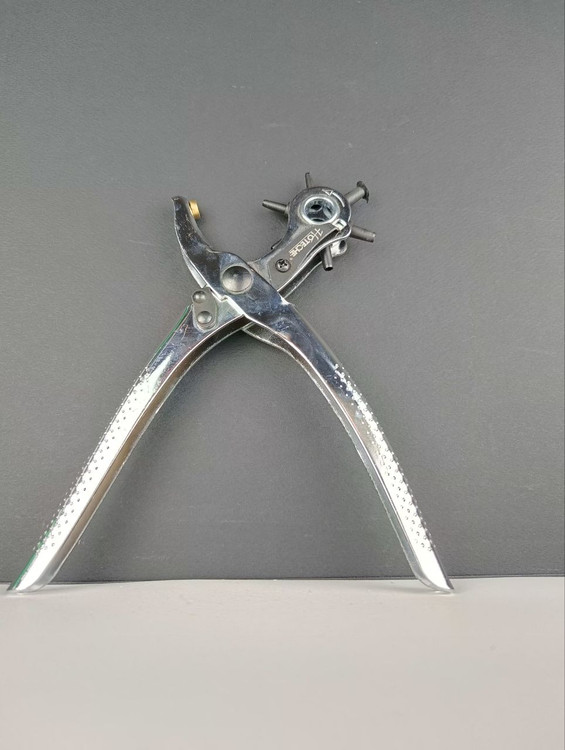 2. ابزار را روی ماده مورد نظر (مانند چرم یا کمربند و یا کفش) قرار داده و با فشار دستهها، سوراخ ایجاد کنید.