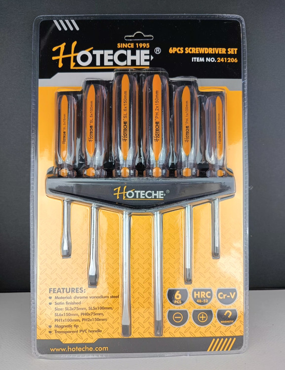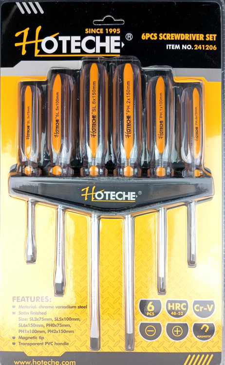 مجموعه پیچ گوشتی 6 عددی دسته شفاف نوک مغناطیسی برند اصلی Hoteche هوتچ (241206)