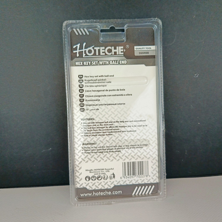 مجموعه 9عددی آچار آلن6گوش کوتاه با انتهای توپی روکش دار حرفه ای از سایز 1.5 تا10 میلی متر-برند اصلی Hoteche هوتچ (260408)
