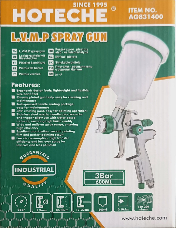 این محصول یک پیستوله رنگ پاشی (اسپری گان) صنعتی با کیفیت برند HOTECHE است که برای کارهای حرفهای و با حجم کاری بالا طراحی شده است. مدل L.V.M.P با کد 831400 یک ابزار قابل اعتماد برای پوششدهی یکنواخت و با کیفیت در محیطهای مختلف، حتی شرایط مرطوب، میباشد.