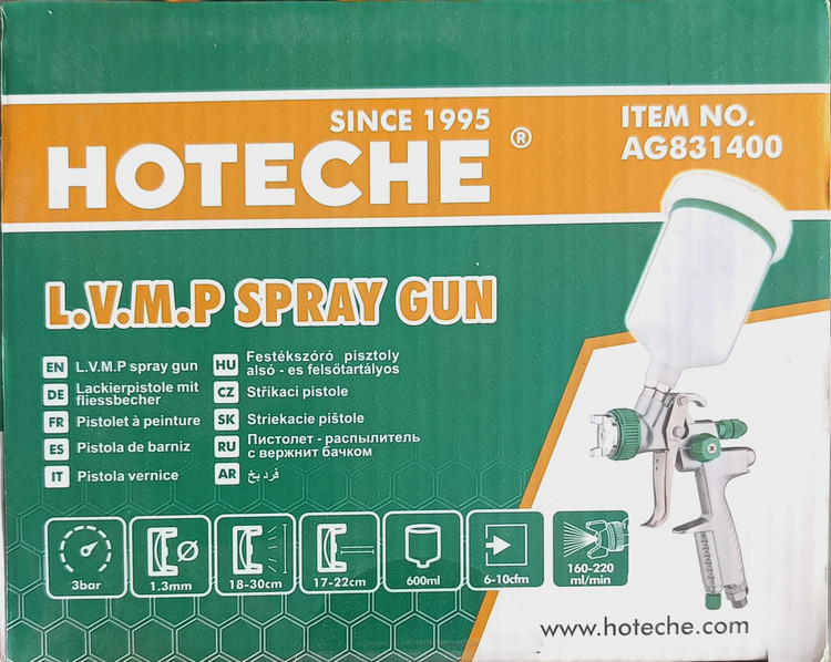 پیستوله رنگ اسپری فوق صنعتی مدل L.V.M.P فشار 3 بار 600 میلی لیتر برند اصلی هوتچ Hoteche کد محصول (831400)