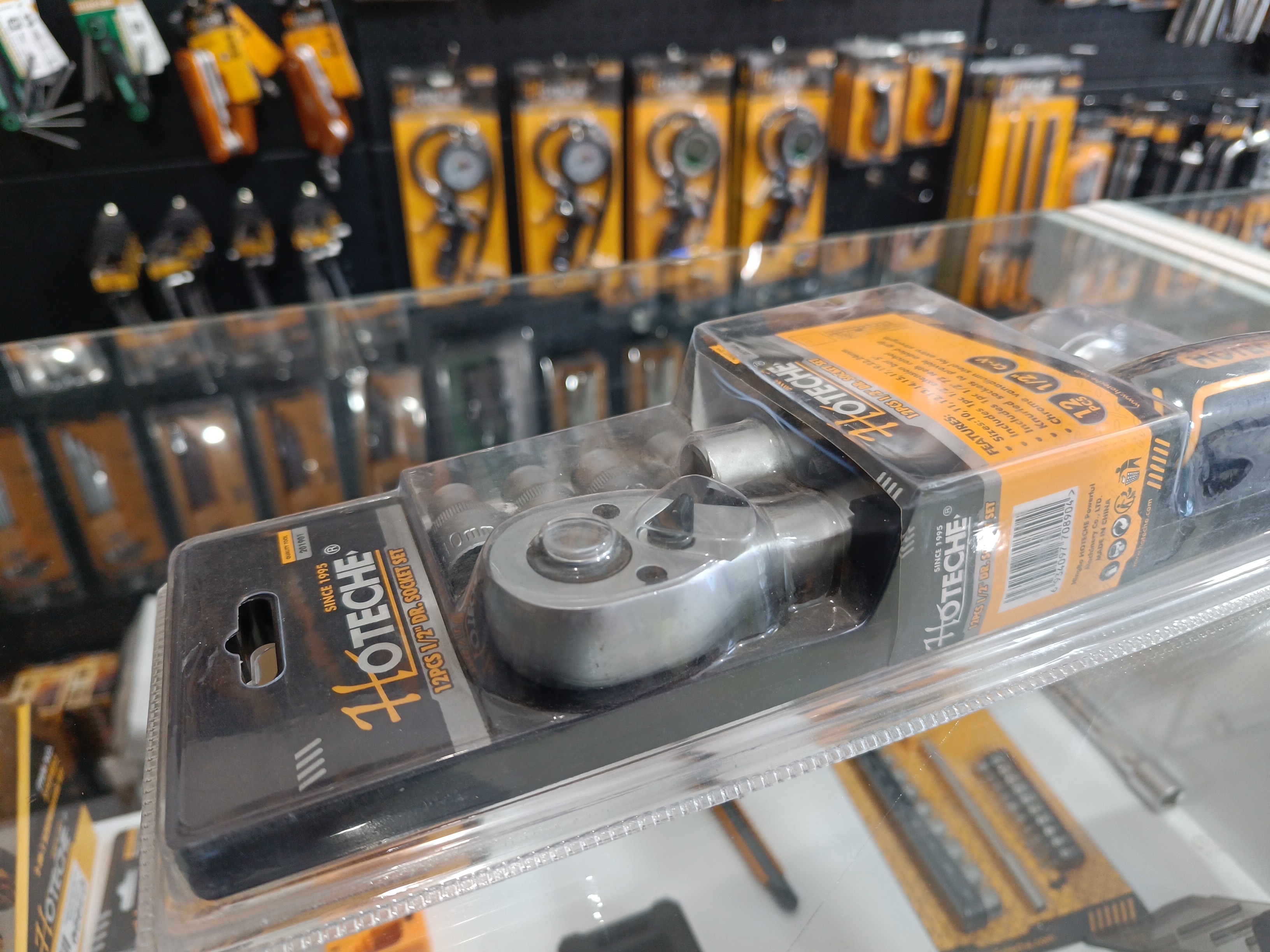 مجموعه ۱۲ عددی بکس ½ اینچی صنعتی سنگین به همراه دسته جرجر سنگین برند اصلی «هوتچ» با کد محصول (201901)