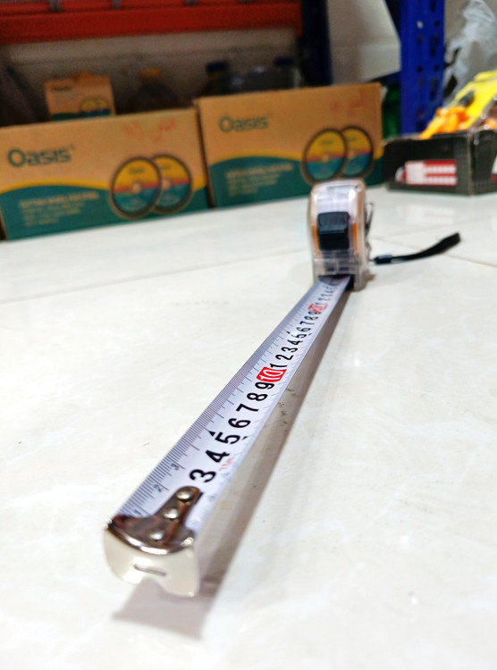 · میتوانید دو سر متر را با دستان خود بگیرید و اندازه را بردارید یا روی کار قرار دهید.
