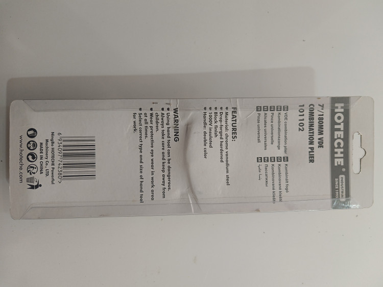 انبردست فوق صنعتی عایقدار ۱۸۰ میلیمتری۷ اینچی CrV روکش مشکی عایق ۱۰۰۰ ولت دسته دو رنگ برند اصلی هوتچ مدل (101102)