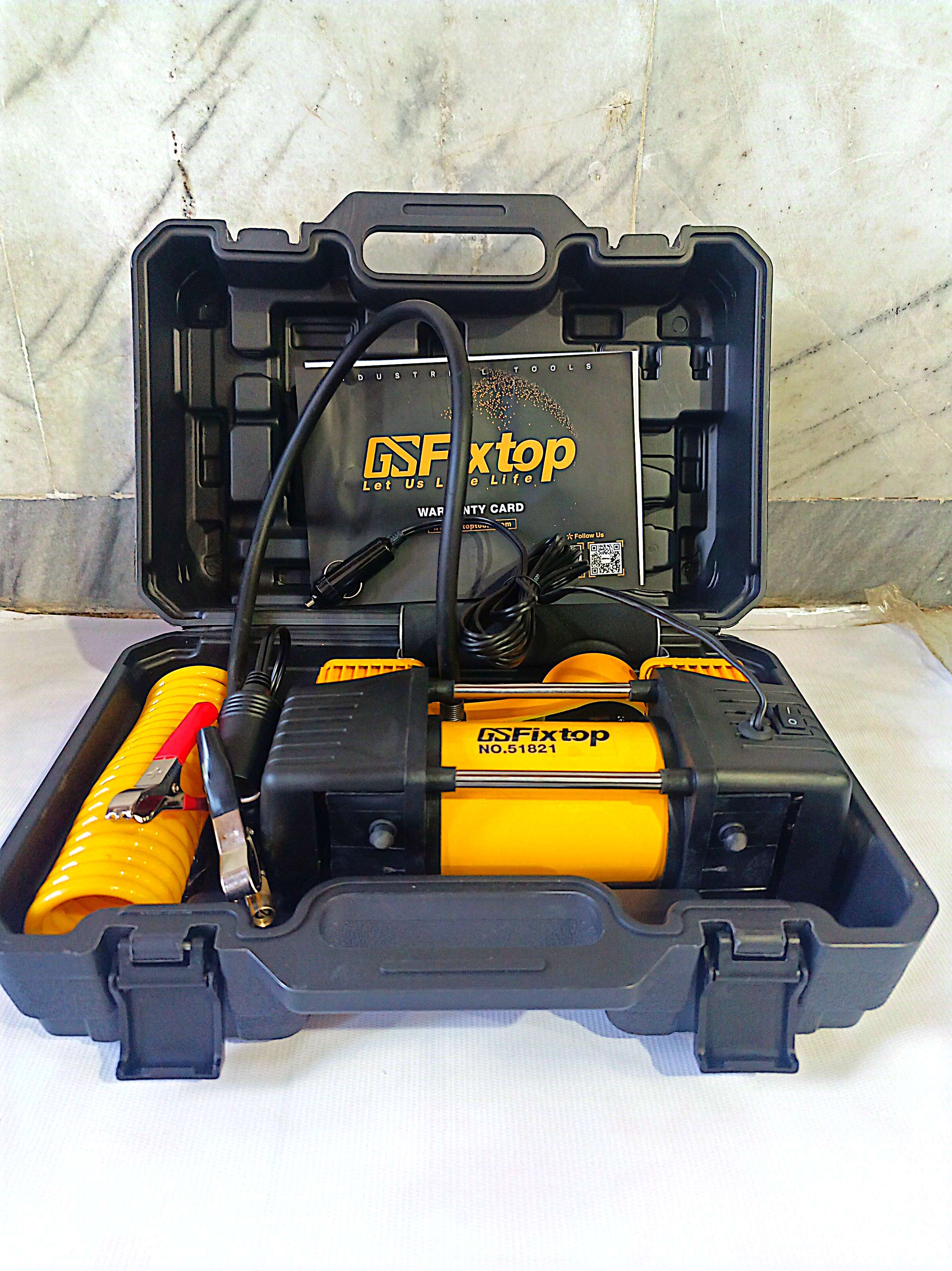 پمپ باد فندکی GSFIXTOP مدل 51821 یکی از پیشرفتهترین و قدرتمندترین پمپهای فندکی است که با دارا بودن اقلام همراه در جعبه برای باد کردن لاستیکهای خودرو در شرایط مختلف و باد کردن لاستیک موتورسیکلت و دوچرخه و انواع توپ طراحی شده است. این محصول با قدرت 300 وات، سبک، قابل حمل و دارای تمامی ویژگیهای لازم برای فندکی در منزل، محل کار، کوه، جاده و طبیعت، یک ابزار ضروری برای هر خودرو است