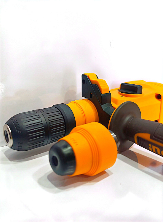 این دستگاه هم میتواند به عنوان چکش تخریبی و هم به عنوان درل استفاده شود. با تغییر سر دستگاه، میتوانید بین حالتهای مختلف تغییر کنید.