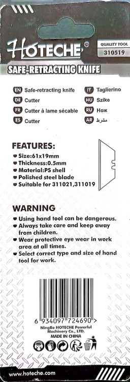 چاقوی ایمنی (کاتر تیزبر) بازگشتی هوتچ (Hoteche) با بدنه PS Shell کد محصول (310519)
