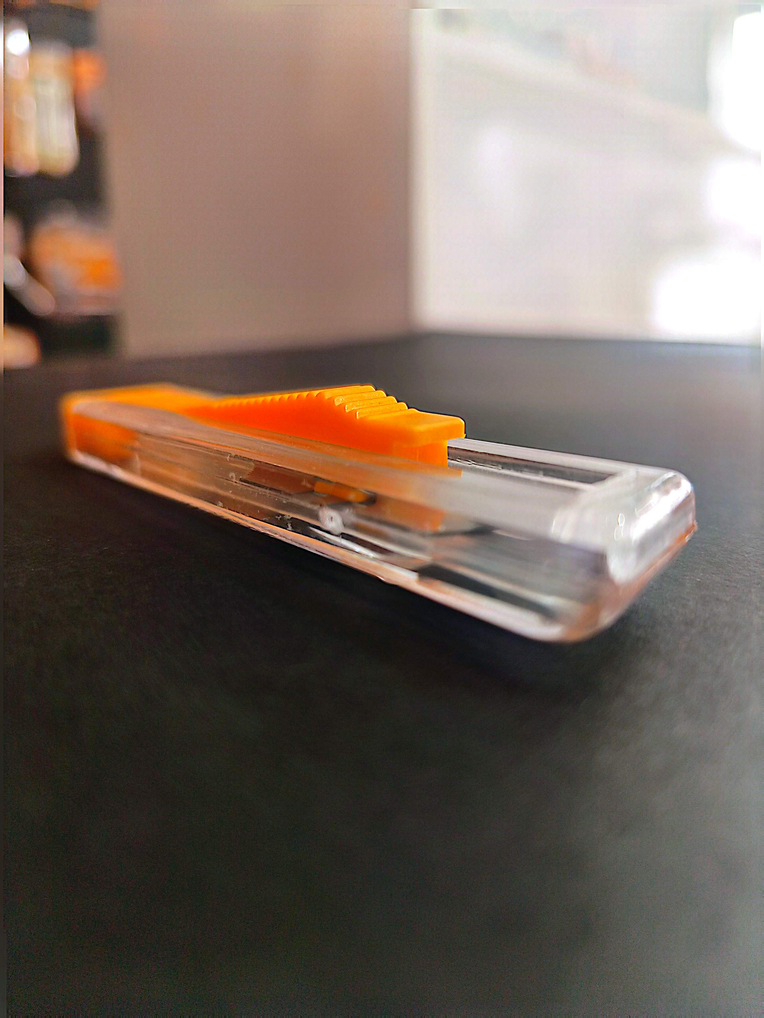 این چاقوی ایمنی با طراحی هوشمندانهاش، یکی از بهترین انتخابها برای کارهای ظریف و دقیق است. ویژگی بارز این محصول، مکانیسم بازگشت خودکار تیغه است که با کمک یک فنر داخلی، بلافاصله پس از رها کردن فشار دست، تیغه را به داخل بدنه میکشد. این ویژگی باعث میشود تیغه هرگز بیرون از بدنه باقی نماند و از آسیب دیدن لباس، کیف، دستها و سطوح کار جلوگیری کند.